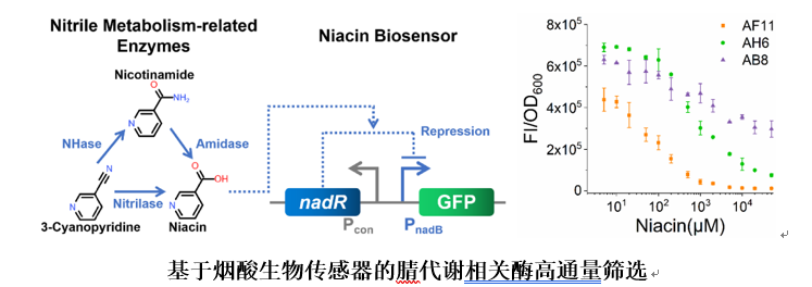 周哲敏教授团队在基于生物传感器的高通量筛选平台开发方面取得重要进展,研究成果“Construction and Application of a High-Throughput In Vivo Screening Platform for the Evolution of Nitrile Metabolism-Related Enzymes Based on a Desensitized Repressive Biosensor”正式发表于ACS Synthetic Biology(IF=5.11)( //doi.org/10.1021/acssynbio.1c00642)。