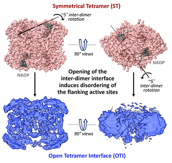 蛋白质寡聚化或组装成稳定的多亚基复合物的特征在蛋白质家族甚至超家族中极为常见,目前对于其寡聚结构进化和保守的原因不清楚,通过寡聚相互作用稳定蛋白质结构的特定物理化学机制和结构特征仍未完全表征。本研究在近平滑假丝酵母中发现了短链脱氢酶/还原酶的同工酶(S)-羰基还原酶(SCR、SCR1、SCR2和SCR3)在溶液中以四聚体形态存在,研究使用包括X-射线晶体学和低温电子显微镜(cryo-EM),发现短链脱氢酶/还原酶超家族中保守的四聚体界面直接稳定了活性位点的结构,是维持活性位点天然构象的必要条件。在单个亚基的情况下维持等效活性位点结构需要更长的氨基酸序列,因此寡聚化可以通过降低生物合成酶的代谢成本来增强进化适应性,具有不同特异性的SCR和SCR2可以形成异源四聚体蛋白,这种特殊的寡聚化可以使给定的合成代谢投资产生多样化的功能。该研究还发现SCR四聚体界面结构的扰动可以改变该酶的特异性,为使用寡聚相互作用稳定活性位点结构相关的新酶活性的进化提供途径。由于寡聚界面的大表面积提供了额外折叠能量的缓冲,增加了对氨基酸取代的耐受性,即使它们单独降低折叠稳定性,也能增强酶活性,因此寡聚化结构策略产生了适应性的协同增益,因而寡聚相互作用能够增强进化适应性并有助于维持其广泛的系统发育保守性。这些发现将有助于指导寡聚酶的从头设计,包括结合不同活性的异寡聚酶,将极大地丰富已有的天然酶库。