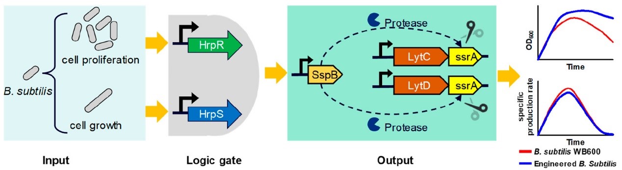 陈坚院士团队刘松副教授课题组在枯草芽孢杆菌蛋白质表达调控方面取得重要进展,研究成果“Autoinduction AND Gate inhibits cell lysis to enhance protein production inBacillus subtiliscontrolled by population density and cell physiological state”正式发表于ACS Synthetic Biology(IF=5.249) (//pubs.acs.org/doi/10.1021/acssynbio.2c00624)。