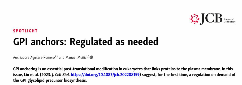 青年教师柳艺石近期发表的GPI锚定蛋白相关研究工作(Liu et all,. J Cell Biol. 2023; 222(5): e202208159. //doi.org/10.1083/jcb.202208159)。