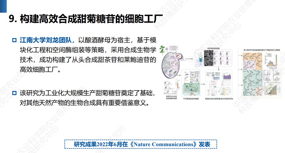和未来食品科学中心陈坚院士团队刘龙教授课题组的研究成果“De novo biosynthesis of rubusoside and rebaudiosides in engineered yeasts”(于2022年6月发表于《Nature Communications》,第一作者为2019级博士生徐雅梦,刘龙教授为通讯作者)成功入选。
