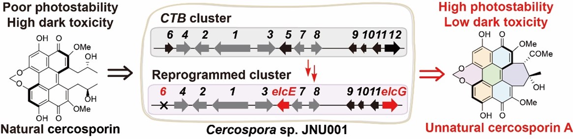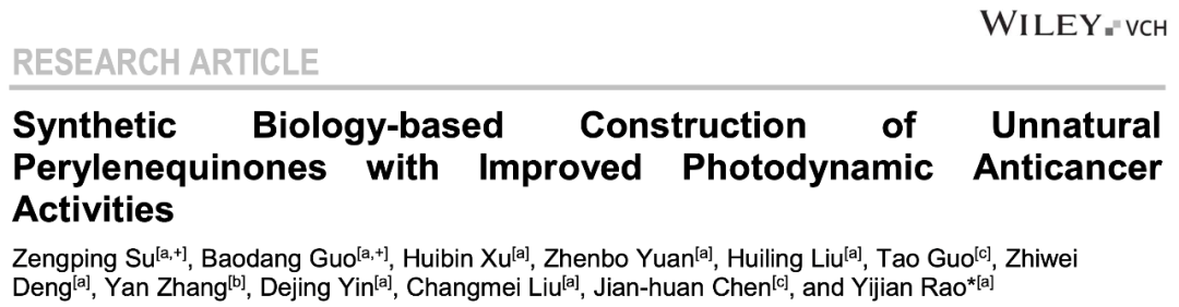综上所述,饶义剑教授团队利用合成生物学方法对天然的尾孢菌素生物合成途径进行重编程,获得了优于自然的非天然苝醌化合物,解决了目前天然苝醌化合物光稳定性差、暗毒性高以及无选择性等问题,为苝醌化合物的药物开发奠定了坚实的基础。