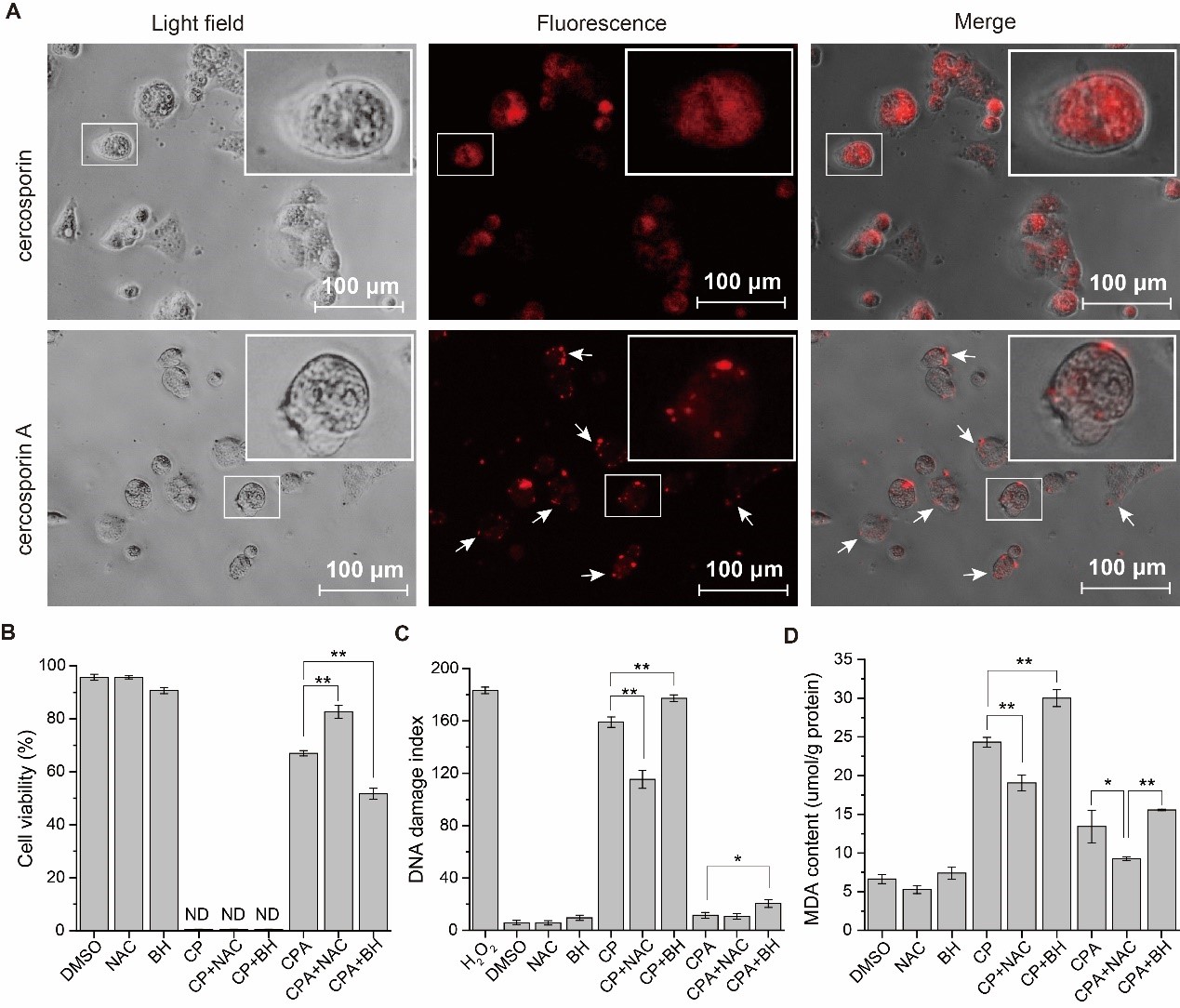 图3黑暗条件下尾孢菌素和尾孢菌甲素的添加对细胞的影响
