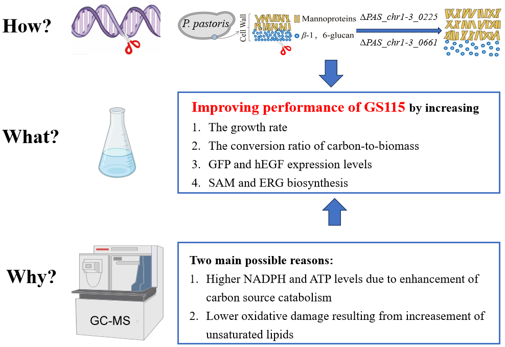 王小元教授团队胡晓清课题组在毕赤酵母底盘细胞设计改造方面取得重要进展,研究成果“Impact of cell wall polysaccharide modifications on the performance of Pichia pastoris: novel mutants with enhanced fitness and functionality for bioproduction applications”正式发表于Microbial Cell Factories (IF = 6.4) ()。
