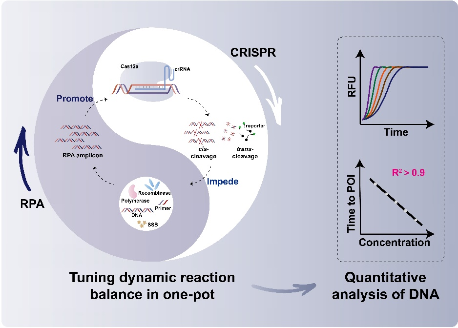 徐岩教授团队吴群教授课题组在新型微生物定量检测技术的开发中取得了重要进展,研究成果“Tuning the Dynamic Reaction Balance of CRISPR/Cas12a and RPA in One Pot: A Key to Switch Nucleic Acid Quantification”以主封面文章形式正式发表于《ACS Sensors》杂志(IF:8.9)()。