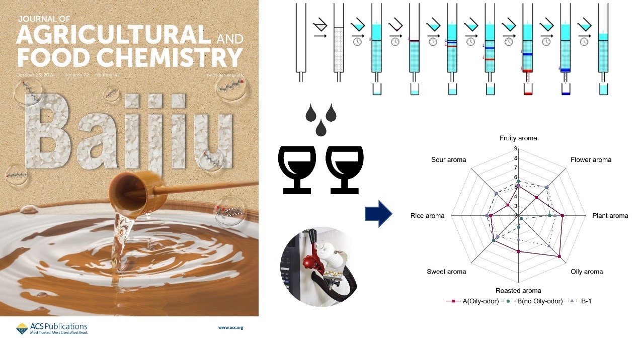 徐岩教授团队唐柯副教授在米酿白酒特征风味解析方面取得重要进展,研究成果“Characterization of Potent Odorants Causing an Oily-odor in Rice-made Baijiu by Comparative Aroma Extract Dilution Analysis, Quantitative Measurements, Aroma Addition, and Omission Studies.”以封面文章发表于Journal of Agricultural and Food Chemistry(一区, Top, IF 5.7)(//pubs.acs.org/doi/10.1021/acs.jafc.4c06256)。