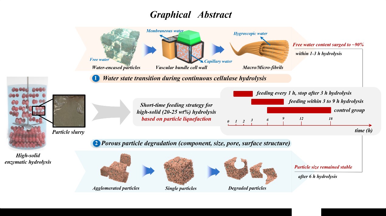 生物资源与生物炼制研究团队在木质纤维素生物质多孔颗粒特性和水态分布对浓醪酶解制糖影响方面取得了重要进展,研究成果“Understanding the role of porous particle characteristics and water state distribution at multi-scale variation on cellulase hydrolysis of lignocellulosic biomass”正式发表于Energy(一区, Top, IF 9.0)。