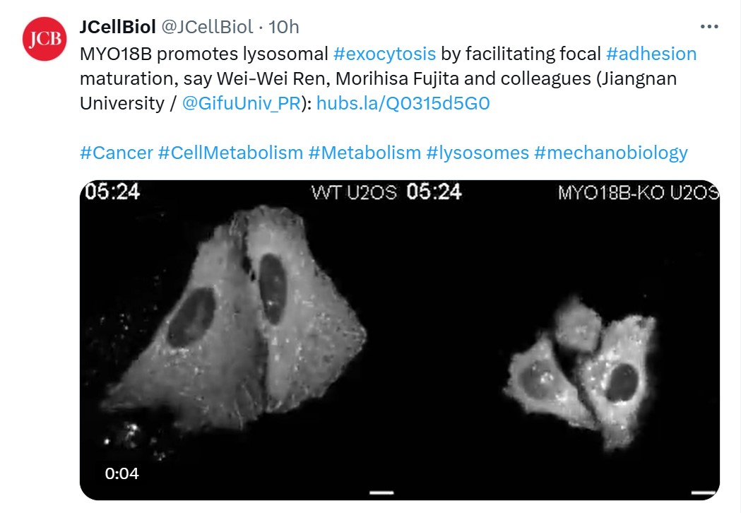 中西秀树教授团队在溶酶体分泌调控截短甘露糖型N-聚糖的细胞膜表达方面取得重要进展,研究成果“),JCB官网对该成果进行了推介。
