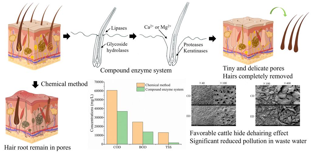 李崎教授团队在皮革环保脱毛方面取得重要进展,研究成果“Significant alleviation of water pollution in leather dehairing through the construction and application of an eco-friendly compound enzyme system”正式发表于Journal of Environmental Chemical Engineering (IF = 7.4) ()。
