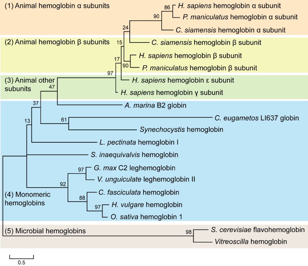 图1 血红蛋白的系统发育树分析