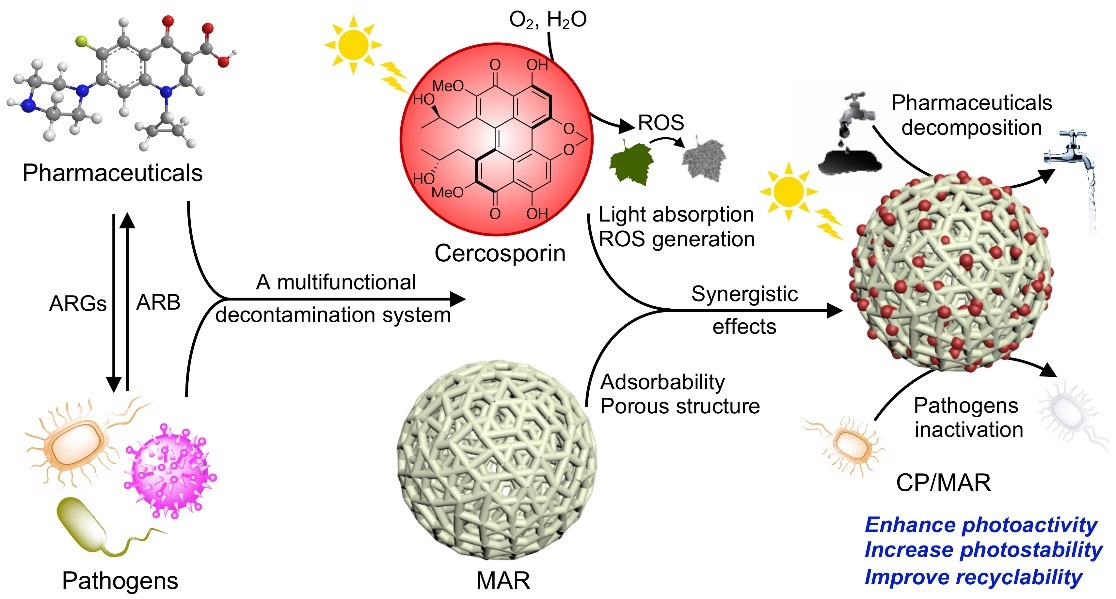 图1.天然产物尾孢菌素在仿生光降解水污染中残留药物和致病菌的应用