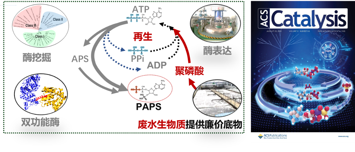 糖化学与生物技术教育部重点实验室、未来食品科学中心康振教授课题组在3′-磷酸腺苷-5′-磷酸硫酸(PAPS)生物合成领域取得新突破,研究成果“Closed-Loop System Driven by ADP Phosphorylation from Pyrophosphate Affords Equimolar Transformation of ATP to3′-Phosphoadenosine-5′-phosphosulfate”以封面形式发表了在ACS Catalysis(),2020级博士生胥睿睿和副研究员王阳为该论文共同第一作者,康振教授为通讯作者。