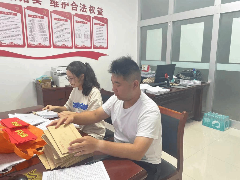 成员协助整理资料