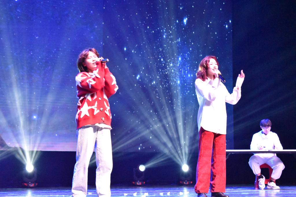 第一篇章,缘起江南、一往情深。小蠡湖乐队一首《回不去的夏天》燃爆舞台、开启狂欢;舞蹈《Toxic》节奏鲜明的舞蹈搭配明快的舞步,点燃晚会的气氛,展现了青春的明亮绚烂;小品《内卷不绝》贴近学生生活、演绎身边故事,笑料不断、精彩多多;歌曲《电影派对》唱出青年的活力与激情,台上台下互动火热;朗诵和合唱完美结合的《这世界那么多人》饱含的深情与温暖令人动容。