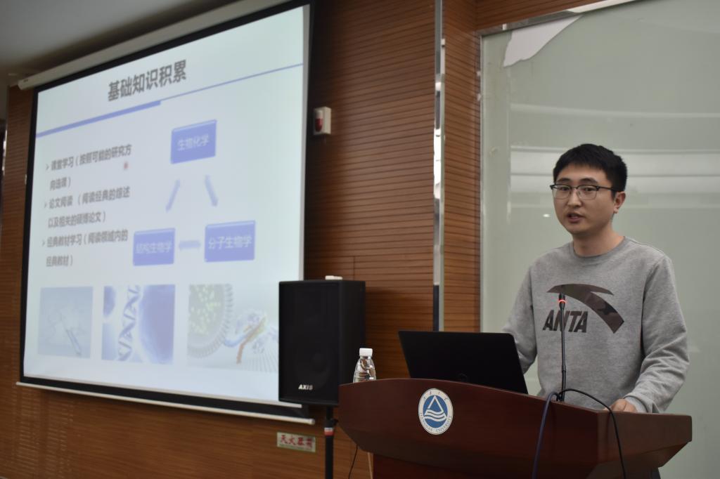 活动开始,侯晓冬首先以基础知识积累、实验技能训练、科研成果产出为主线,介绍了自己的科研筑梦之旅,他建议同学们要心存感恩、积极主动,培养敢于质疑、善于求证的科研精神。“手握基因之钥,创造无限可能”,郝文亮介绍了基因编辑技术的发展现状,结合课题研究与成果转化情况,分享了自己逐梦奋进、上下求索的心路历程。