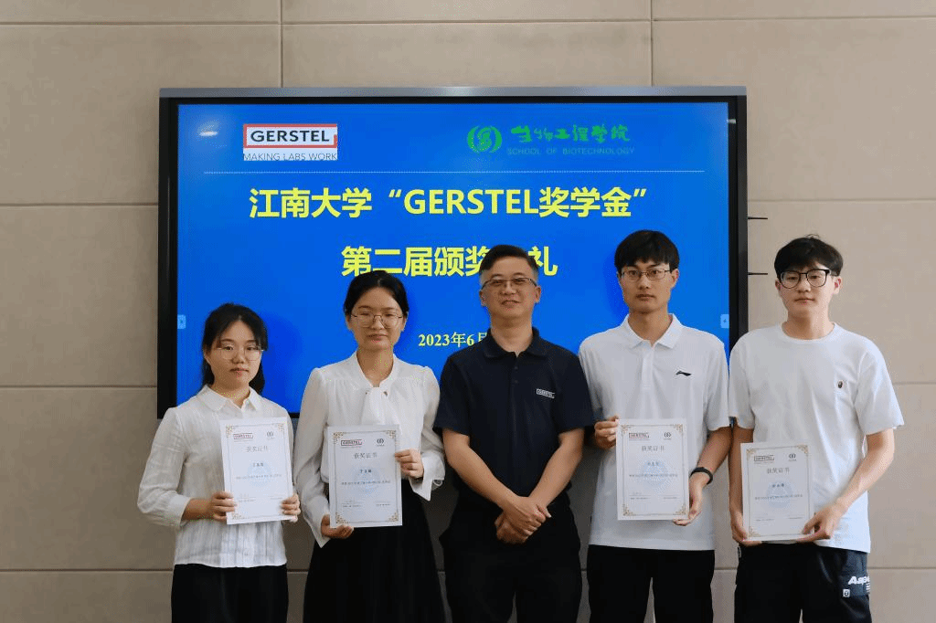 “GERSTEL奖学金”第二届颁奖典礼在生工楼B327举行。哲斯泰(上海)贸易有限公司总经理邱曹华、应用工程师刘婕妤、上海杉谱电子科技有限公司技术总监范义锋, 中国AV