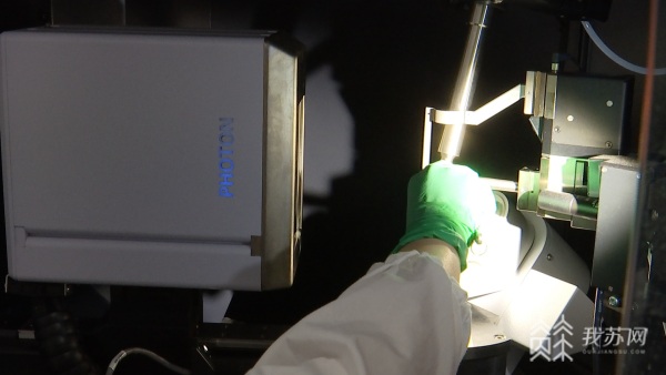 工业生物技术教育部重点实验室,倪晔教授利用X-RAY晶体衍射仪,解析酶蛋白质晶体结构:“我手里拿着的这个,是刚才制备得到的一个蛋白质晶体。捞起来然后用液氮速冻以后,准备加载到这样的一个X射线衍射仪上去,来获得它的一个结构数据。”