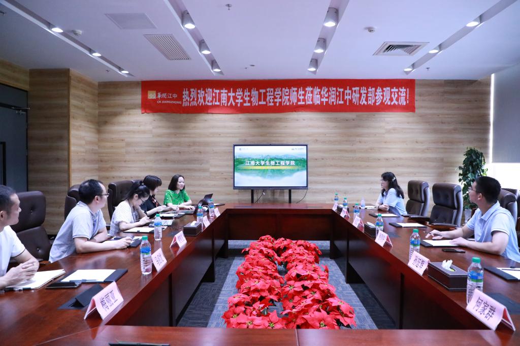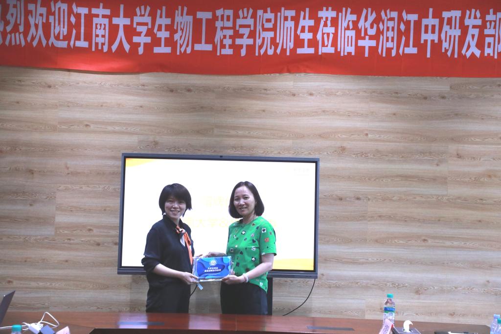 的历史沿革、师资队伍、研究方向,以及近年来学院在人才培养、科学研究等方面取得的成绩进行了介绍。公司人力资源经理卢果详细介绍了江中制药以及华润集团的历史沿革和发展经营情况。研发部初元研究经理刘丹,介绍了公司大健康研究院的研究方向、核心优势与发酵系列产品。座谈会上,校企双方还就高校人才培养、企业用人需求、加强校企合作等开展了讨论。最后,程捷音为公司授牌“大学生就业最佳战略合作伙伴”。