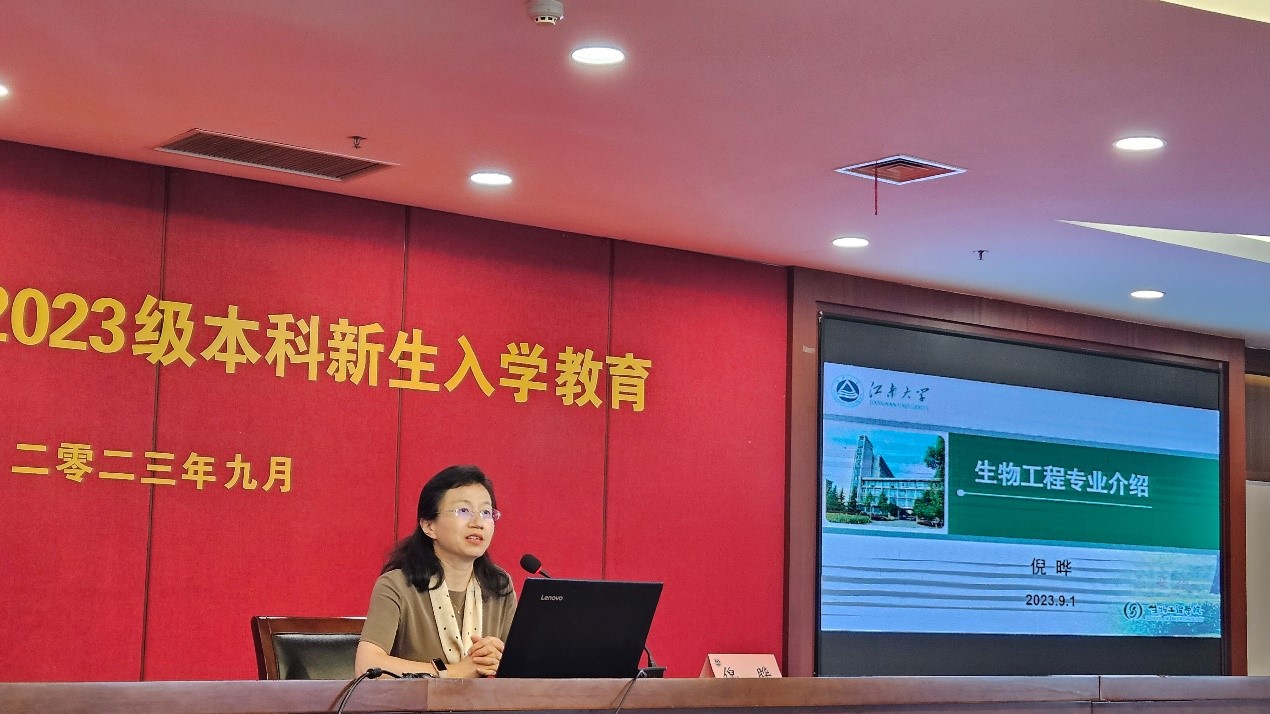 表示热烈欢迎,接着从专业建设历史、理念目标、课程体系、毕业去向、优秀毕业生、国际交流、社会实践七个方面详细介绍了生物工程专业。此外,倪晔教授寄语新生把握大学关键阶段,把握专业发展动态、夯实专业基础、提升英文能力。
