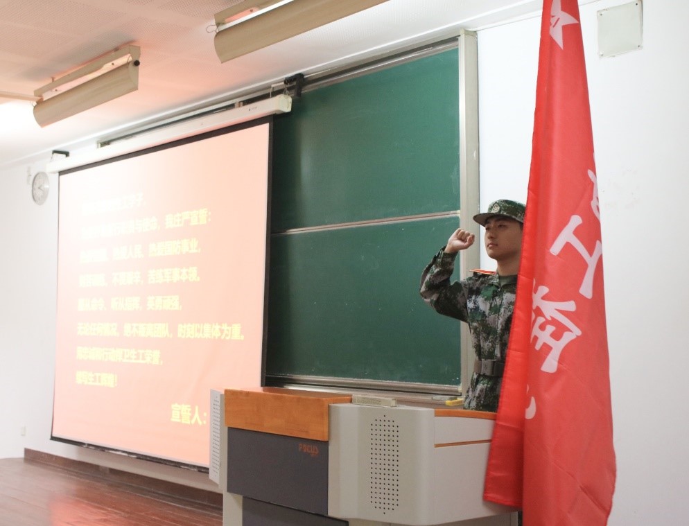 学生工作部(人武部)军事训练科刘璇刚、学院学工办主任兼分团委书记周春江出席。动员大会由2023级本科生辅导员周杰主持。