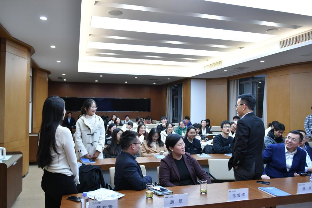 活动最后,学院2023级本科生代表张晓燕同学结合讲座内容与自身学习发展实际与两位企业家进行了现场互动。
