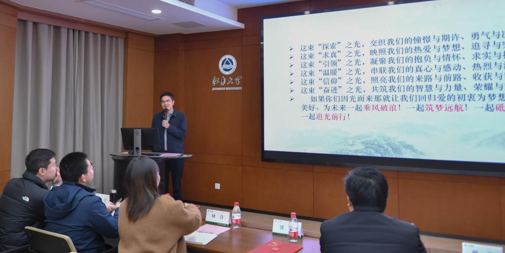 “求真”之光,照亮奋进之路。侯勇教授以“让思想的‘闪电’击中‘内卷’的灵魂——学深悟透落实习近平文化思想”为题开讲。他以“光”为引,从时代背景、理论内涵、重要意义等方面,为学员们深刻领会习近平文化思想带来了系统解读和现实思考。同时也给青马班后续的理论学习和实践带来了指引。