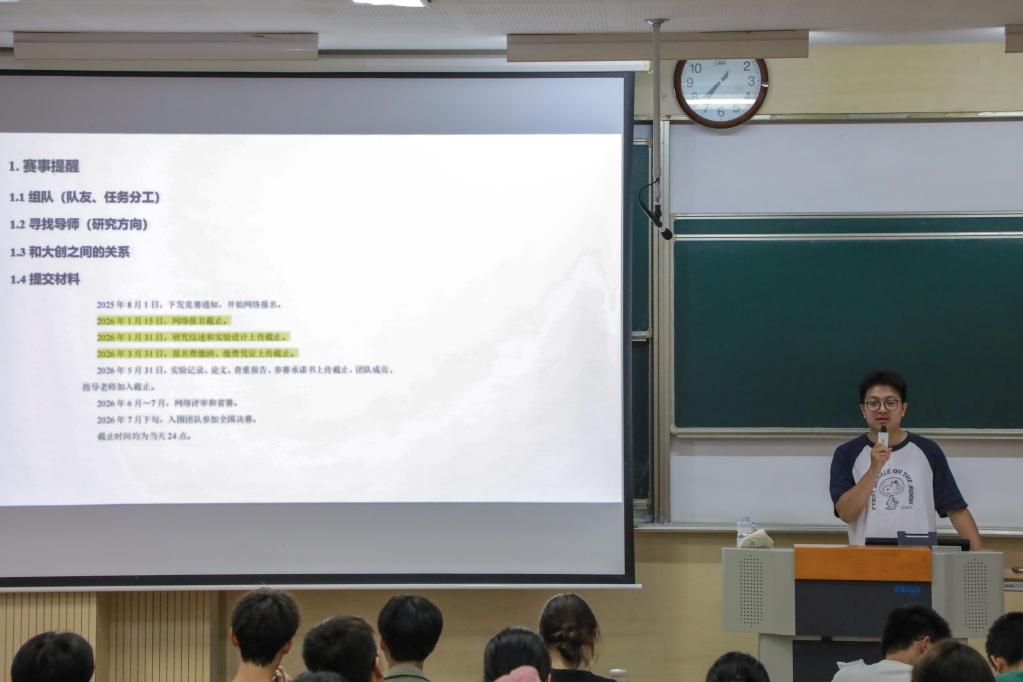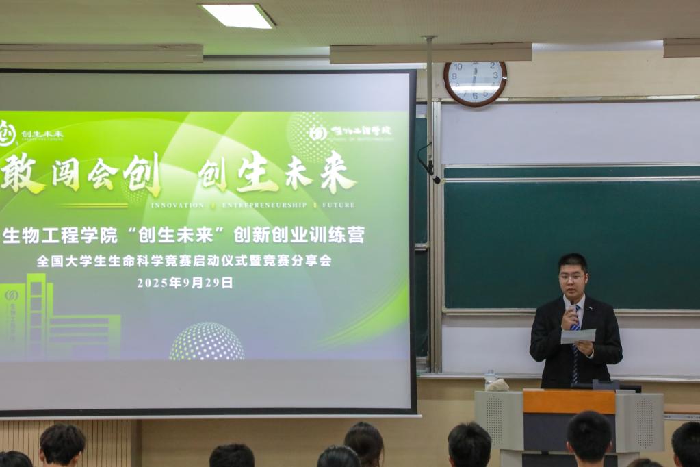 为深入推进2025-2026学年学院学科竞赛工作,进一步强化“以赛促教、以赛促学、以赛促创”育人实效,充分发挥学科竞赛在人才培养中的关键作用, 中国AV 于9月29日在1B103教室举办“创生未来”创新创业训练营学科竞赛经验分享会暨第十一届全国大学生生命科学竞赛启动仪式。学院学科竞赛分管辅导员周杰、第十届全国大学生生命科学竞赛获奖学生代表及学院本科生共200余人参加本次活动。