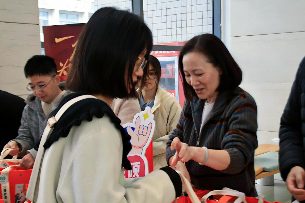 活动现场有一面挂满祝福贺卡的互动墙,引得同学们驻足浏览,那是一份份来自同窗好友们的鼓励与支持,手写的贺卡情意满满,“祝愿我们在顶峰相见”“你有备而来,定凯旋而归”“考研路上每一步都算数,加油你能行”,将美好祝愿送达考研学子身边。