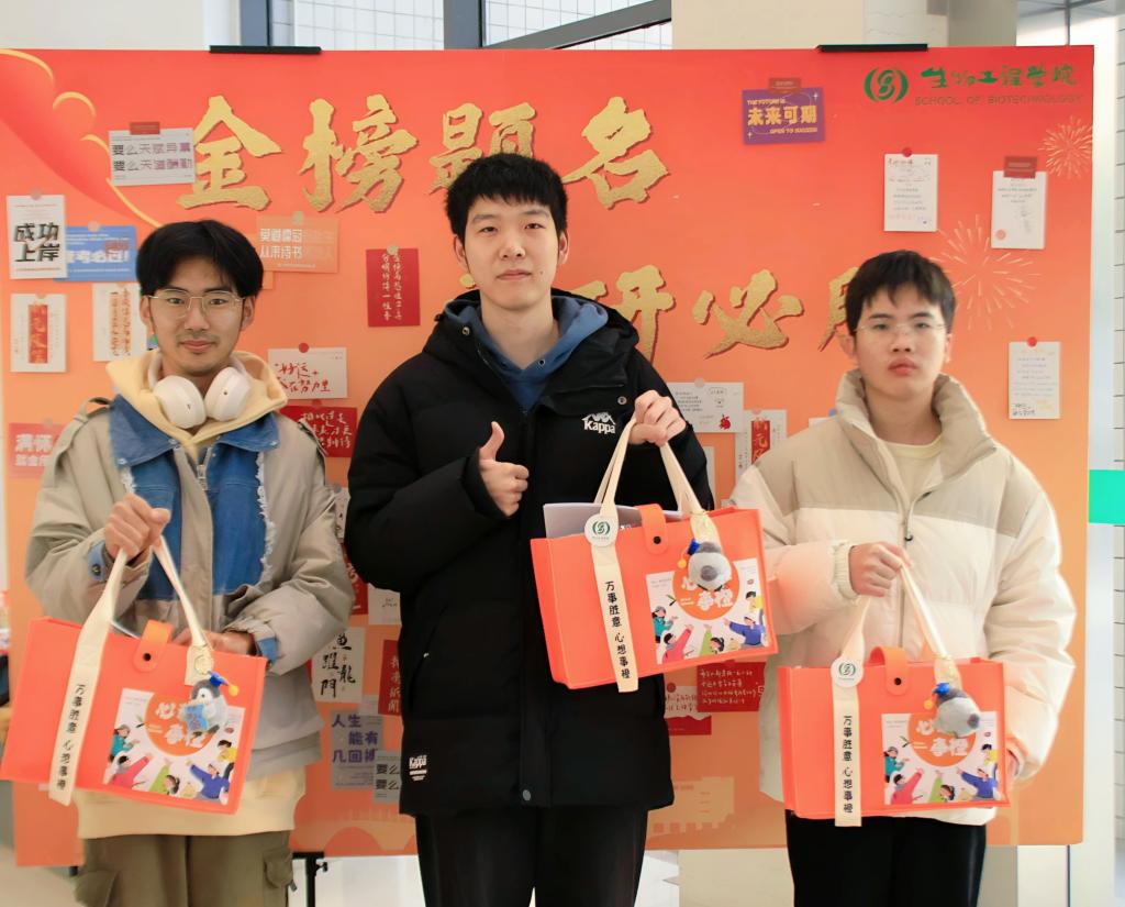 举办2025年考研慰问活动。学院党委书记程捷音,院长尹健、党委副书记、副院长林丹,副院长陈晟,毕业班班主任杨艳坤、陈磊、程中一、袁振波及辅导员刘洛君,为考研同学们送上加油助力包和暖心祝福。“坚持到最后就是胜利,学院永远是你们的坚强后盾”“调整好状态,注意保暖和休息,你们一定行!”这些朴实而真挚的叮嘱,悄然驱散了同学们备考的紧张与疲惫,也为正在冲刺路上的生工考研人注入了满满的信心与力量。