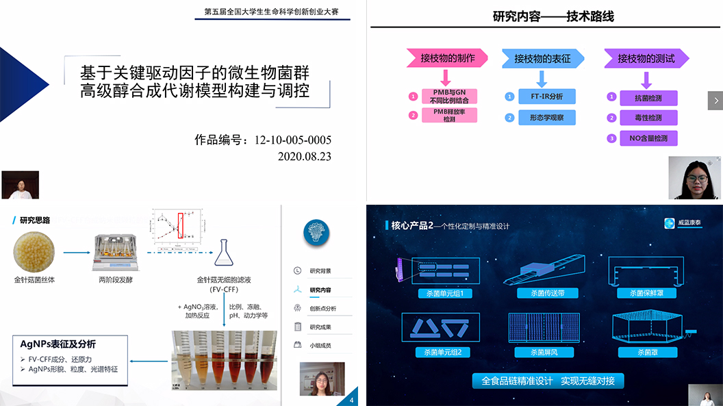 823日,第五届全国大学生生命科学创新创业大赛网络决赛答辩落下帷幕,中国AV 生工、食品、药学院三个学院45个学生项目参赛,共获得大赛一等奖11项、二等奖17项、三等奖9项。徐美娟等51位老师获得优秀指导教师奖,中国AV 获得优秀组织奖。