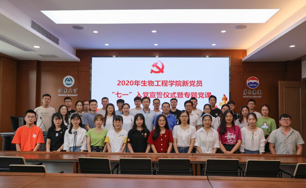 于茅台厅举行新党员“七一”入党宣誓仪式暨专题党课。学院党委书记王维、院长许正宏、党委副书记兼副院长周云龙、党委秘书王玉红、分团委全体老师以及54名新入党的预备党员参加了本次活动。仪式由周云龙同志主持。由于疫情影响,本次活动采用线上线下相结合的方式开展,未返校的党员通过企业微信进行了宣誓和学习。