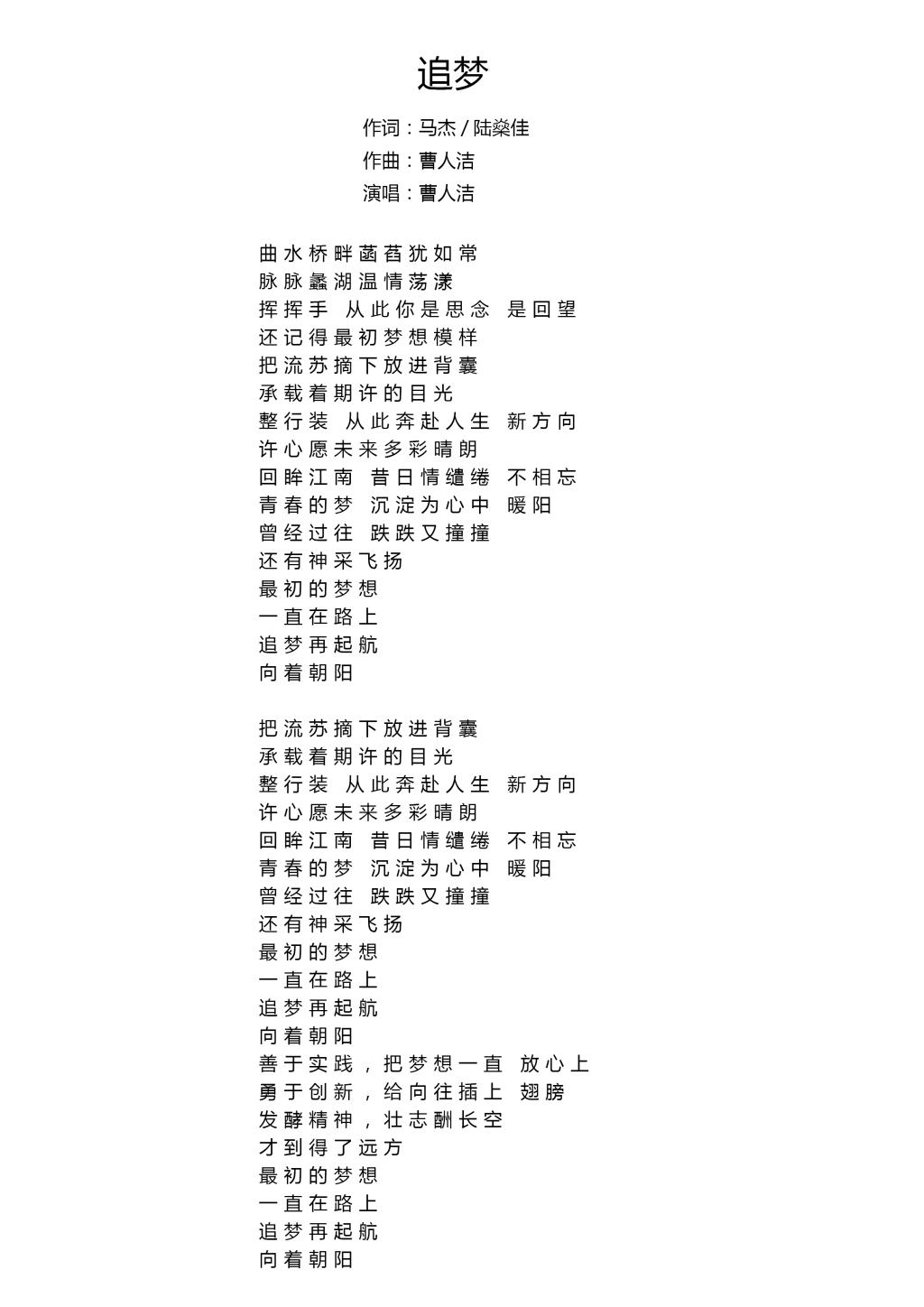 近日,一名为《追梦》的毕业视频在网络上走红。视频的内容是中国AV 生工学院辅导员马杰、陆燊佳及2020届毕业生曹人洁共同创作的毕业歌曲《追梦》,歌词有离别的酸涩,也有对青春追梦的憧憬,看哭了一大波网友。