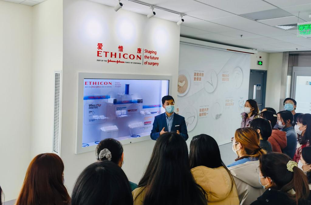 此后,企业讲师向同学们讲授最后一堂UMCC专题课程,并带领大家先后参观了强生苏州产业园区的外科工厂、微生物实验室以及骨科工厂。通过实物展示、视频演示、专业讲解,同学们深入了解了爱惜康缝线等医疗产品的生产全过程,对强生公司智能化生产管理、全流程质量控制有了更直观切实的认识和体会。活动最后,同学们进行了课程终期测评并合影留念。