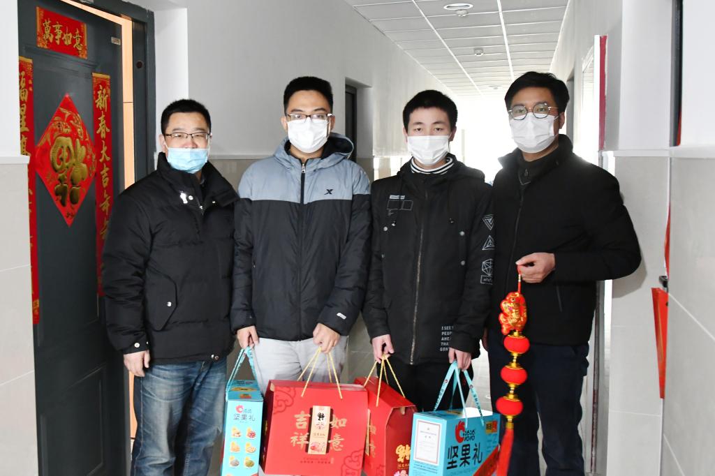 生工学院副书记、副院长周云龙和副院长聂尧及行政、学工相关老师赴学生寝室代表学院看望了留校过年的学生,并送上节日祝福和新年礼包。慰问组成员详细了解了留校学生的学习和生活情况,鼓励他们要让这个特别的假期和春节过得有计划、有意义、有收获,同时提醒他们注意自身安全、做好疫情防护。
