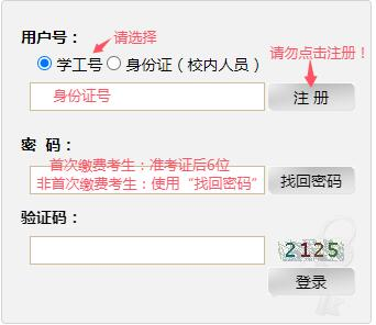 网上缴费平台”(网址:);登录账号为身份证号,登录密码为准考证号后六位(友情提醒:考生账号已开通,切勿自行注册)。按照提示交费,并打印或截图保存付费凭证。