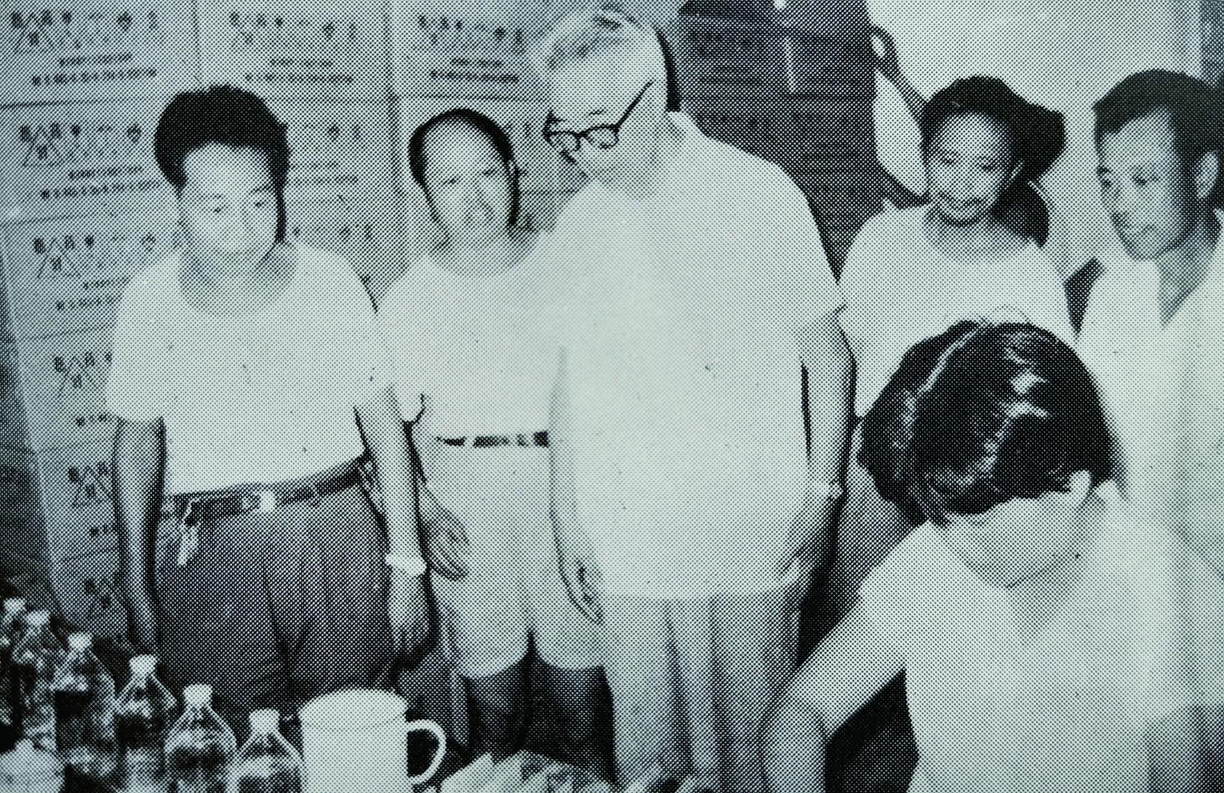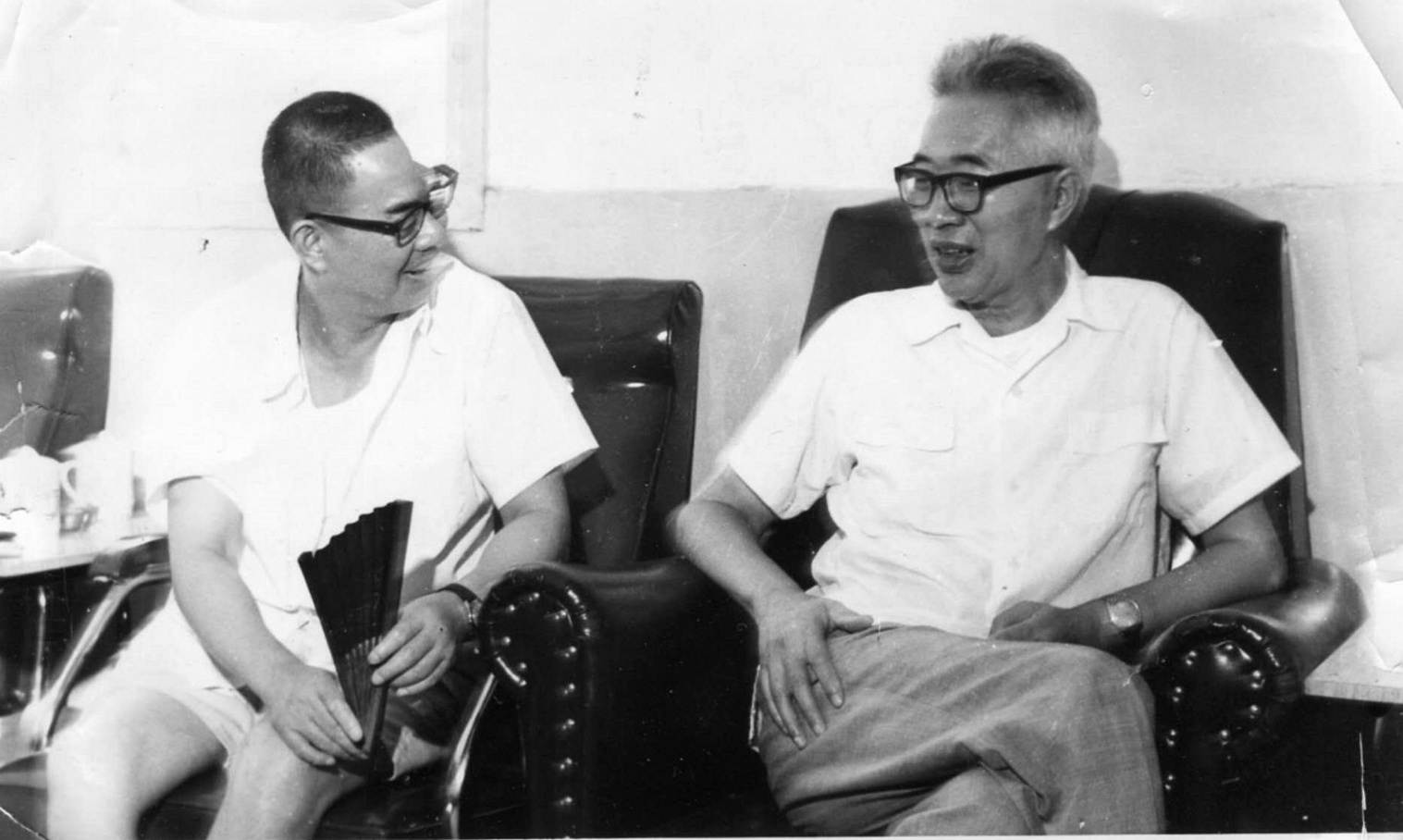檀耀辉(右一)、朱宝镛(左一)、王鸿祺(左二)等发酵学科资深教授与发酵系主任伦世仪讨论学科发展,1984