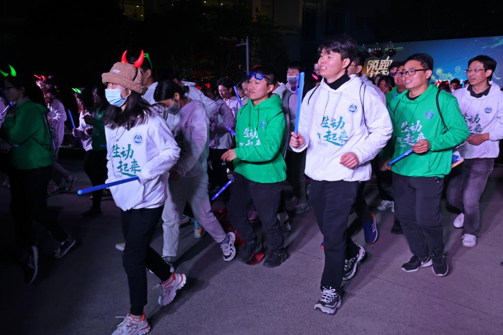 党委书记王维、院长许正宏及近200名师生荧光夜跑团参加活动。