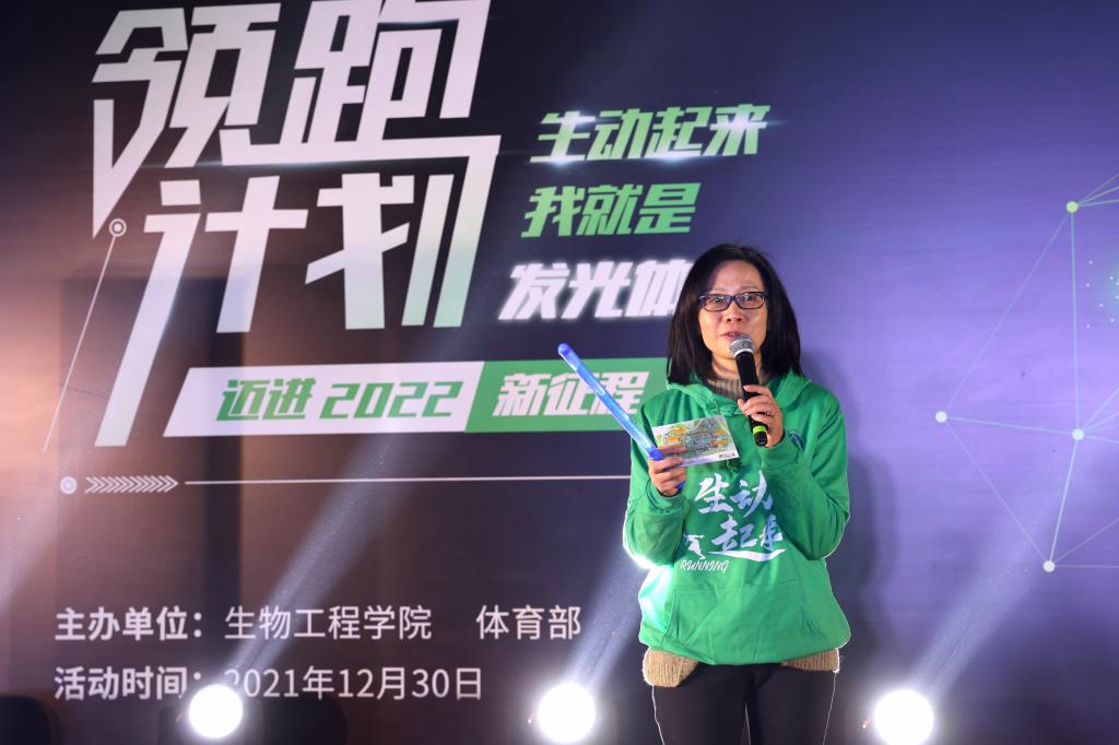 领跑导师徐岩与嘉宾们共同上台签名并合影留念,号召导师与学生相约跑道,“领跑”健康,“领跑”活力,“领跑”未来,共同成长、共同拼搏,共赴精彩!领跑嘉宾张影陆做领跑动员,她呼吁同学们要热爱运动,享受快乐,用脚步奏出动人音符,让运动成为优秀习惯,让梦想从足下启航,做科研路上的追梦者,做美好生活的奔跑者,做伟大祖国的建设者,生动起来,共赴青春约会,大步迈进2022新征程!