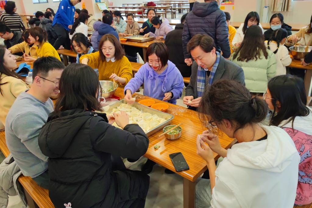 开展“情暖寒冬 醉美主‘饺’”寒假留校学生慰问活动,学院党委书记王维,院长许正宏,党委副书记周云龙,副院长聂尧,办公室老师,辅导员及留校生参加活动。