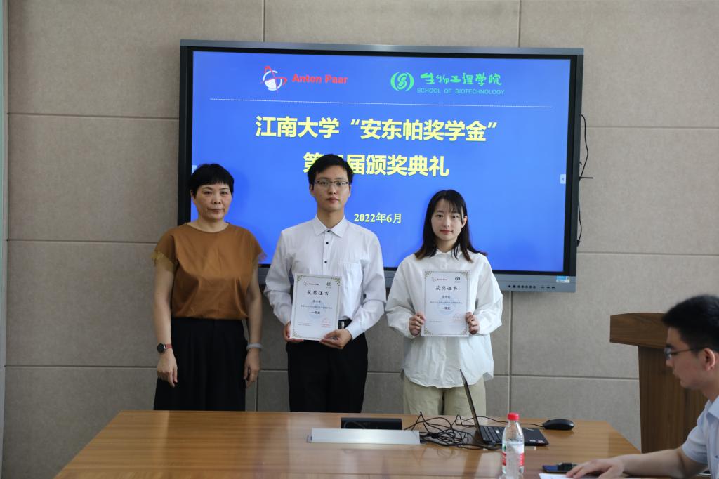 致辞,他向安东帕公司对学院人才培养工作的支持表示感谢,对获奖同学表示祝贺。他从多个角度向企业同仁介绍了学院一流学科建设情况,尤其是学院近年来在人才培养、产教融合等方面取得的成绩,并希望能与安东帕携手同行,加强合作,共面新机遇,同迎新挑战,共创美好未来!自由交流环节,学生代表贯中正就自己的创业项目——都深精酿进行了介绍,双方就酿造行业发展,精酿啤酒市场等话题展开了讨论。
