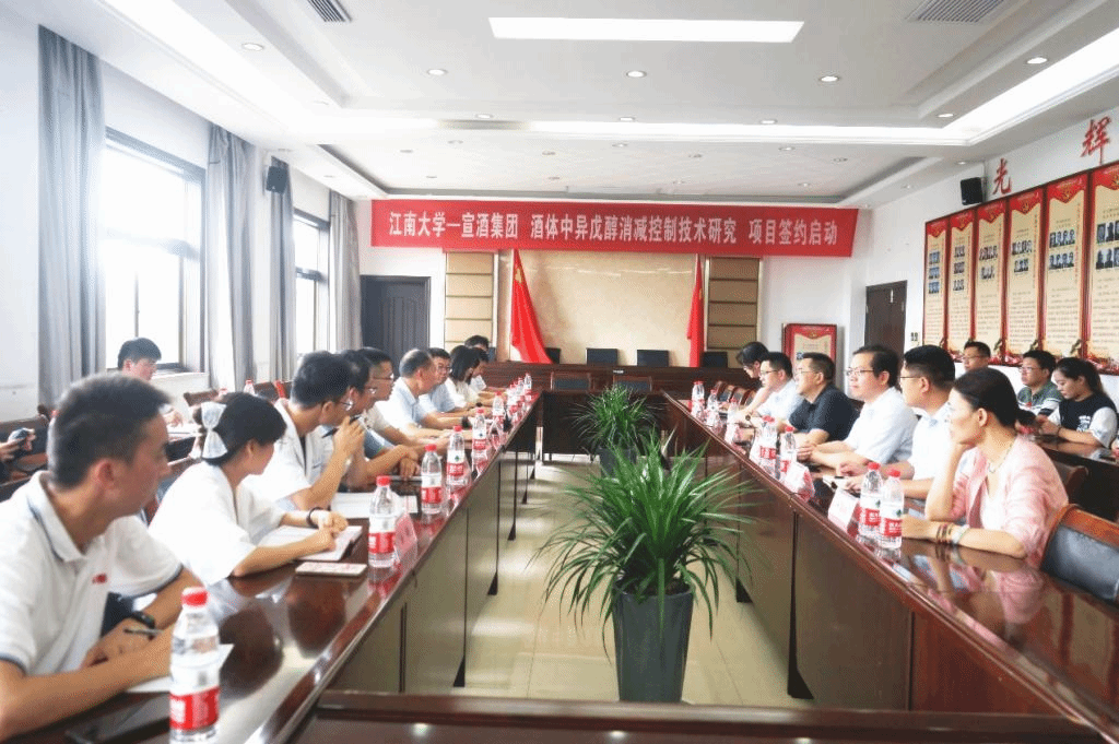 史劲松教授等相关老师及安徽宣酒集团的技术人员分别就如何进一步提高安徽宣酒集团产品品质和市场销售分别讲话,对项目的实施步骤进行了规划,共同分享了对于这一项目的期望。同天,许正宏教授一行对安徽宣酒科研中心、小窖酿造车间、微生物制曲中心等地进行了实地考察,并对安徽宣酒集团科技创新给予了高度肯定。