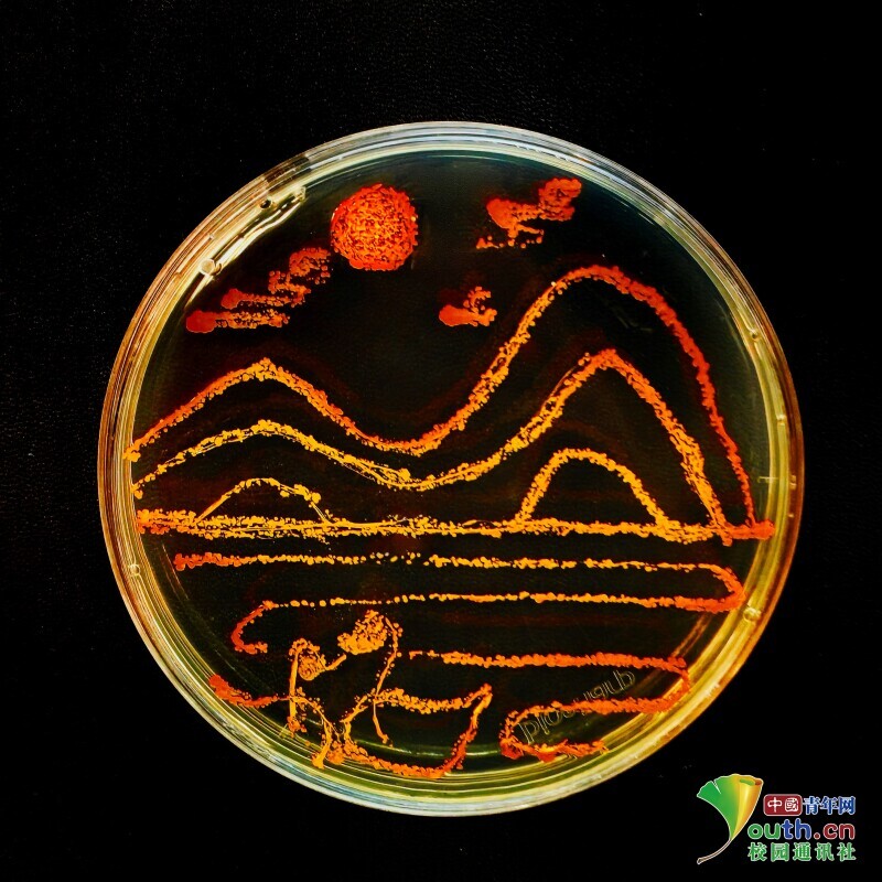 校徽菌落画。中国青年网通讯员 解修兵 摄