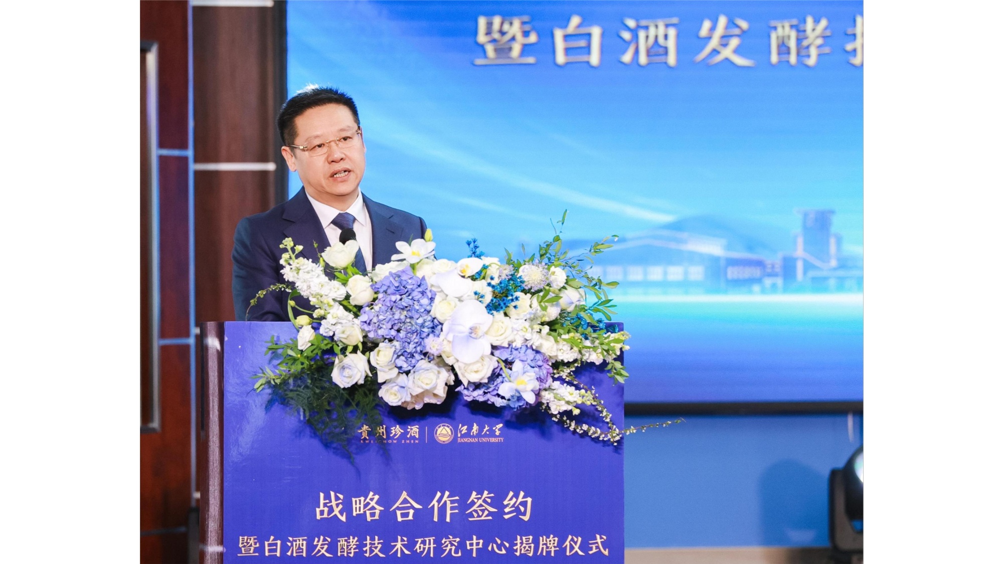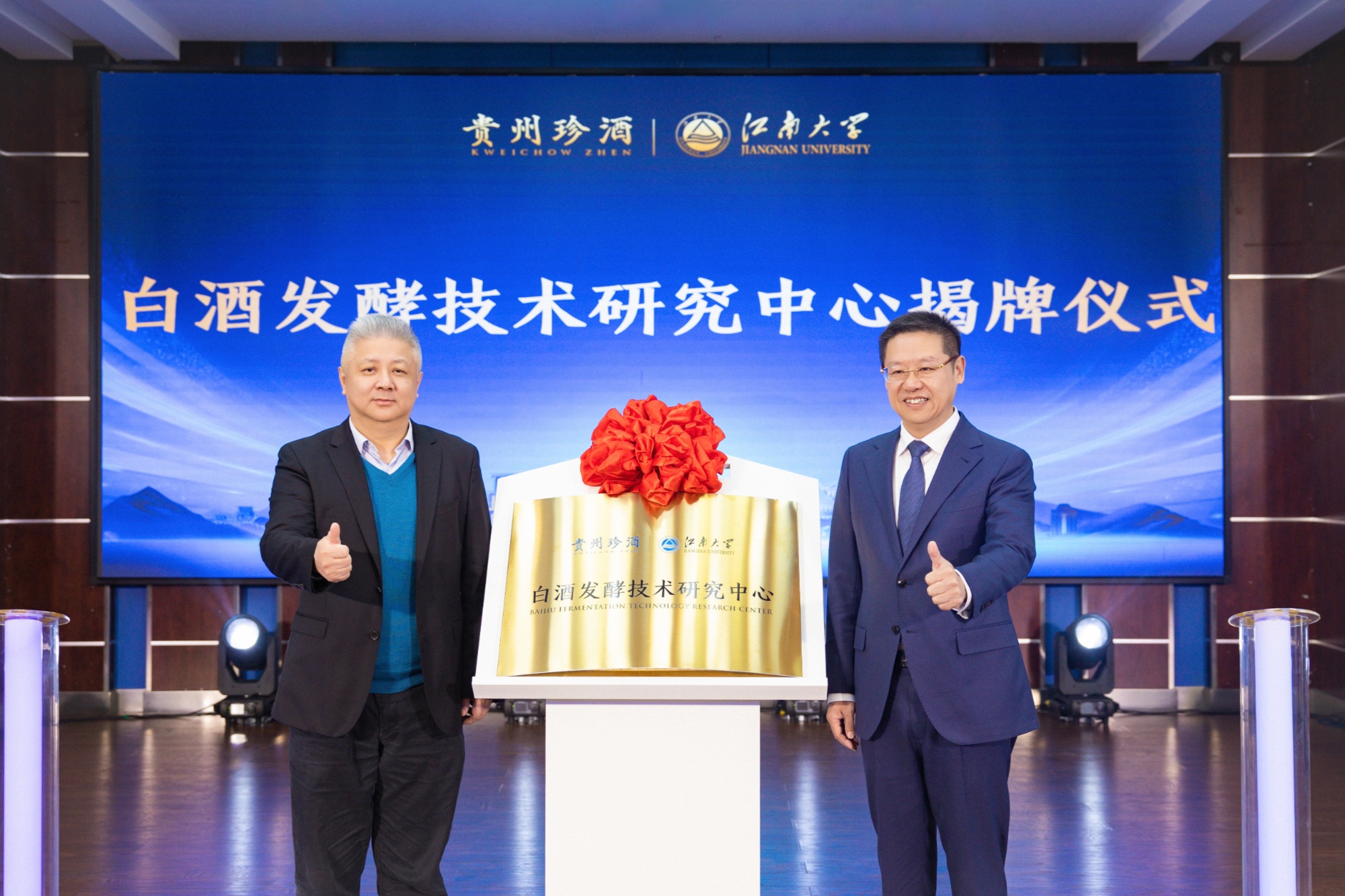 联合组建成立白酒发酵技术研究中心,将为珍酒提供技术支持,并围绕酱酒的发酵工艺、发酵微生物、风味感知等前沿技术和应用技术进行研究,并形成科研成果。徐岩与吴向东共同为研究中心揭牌。