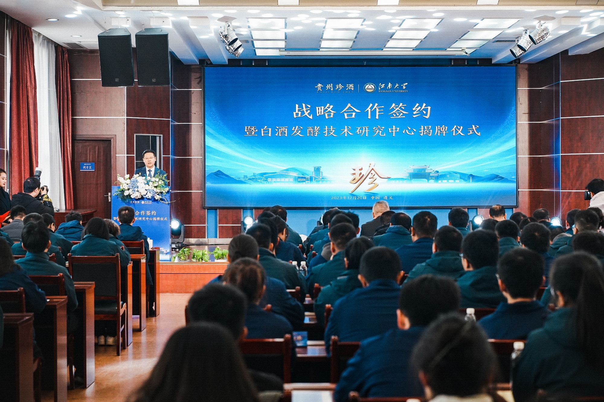 战略合作签约暨白酒发酵技术研究中心揭牌仪式在珍酒公司隆重举行,双方开启校企合作新篇章。
