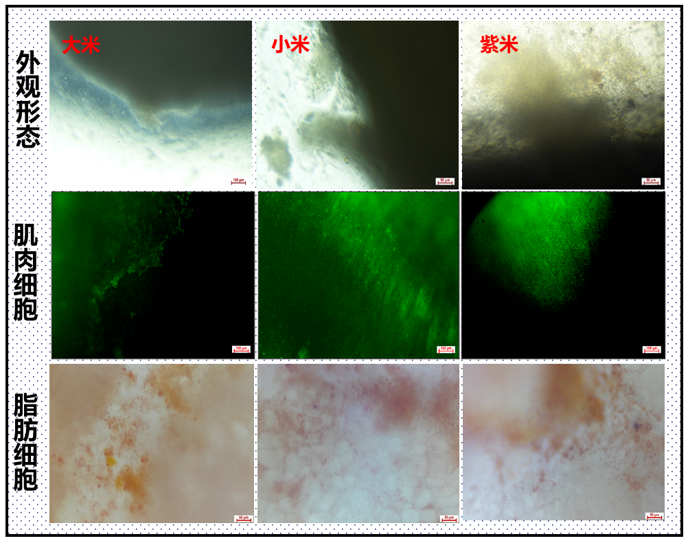 鸡肉米、猪肉米产品显微结构图