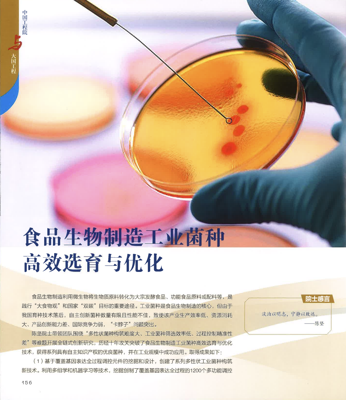 未来食品科学中心陈坚院士团队成果《食品生物制造工业菌种高效选育与优化》成功入选100项具有代表性的工程科技成果。