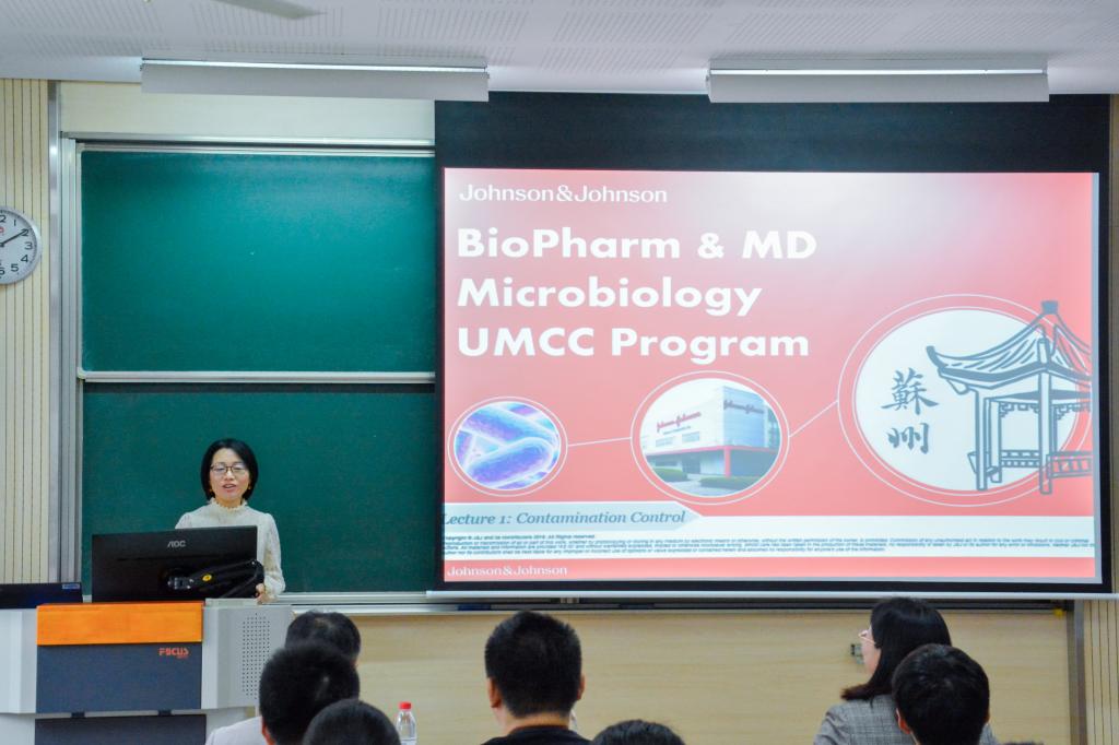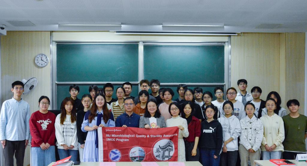 与强生(苏州)医疗器材有限公司2024年度校企合作课程(医疗器械和制药微生物学UMCC模块)正式开班。强生(苏州)医疗器材有限公司微生物质量和无菌保证(MQSA)总监刘雪美、MQSA经理朱健杰、MQSA高级研究员曲娟娟、MQSA研究员孙艺萌, 中国AV