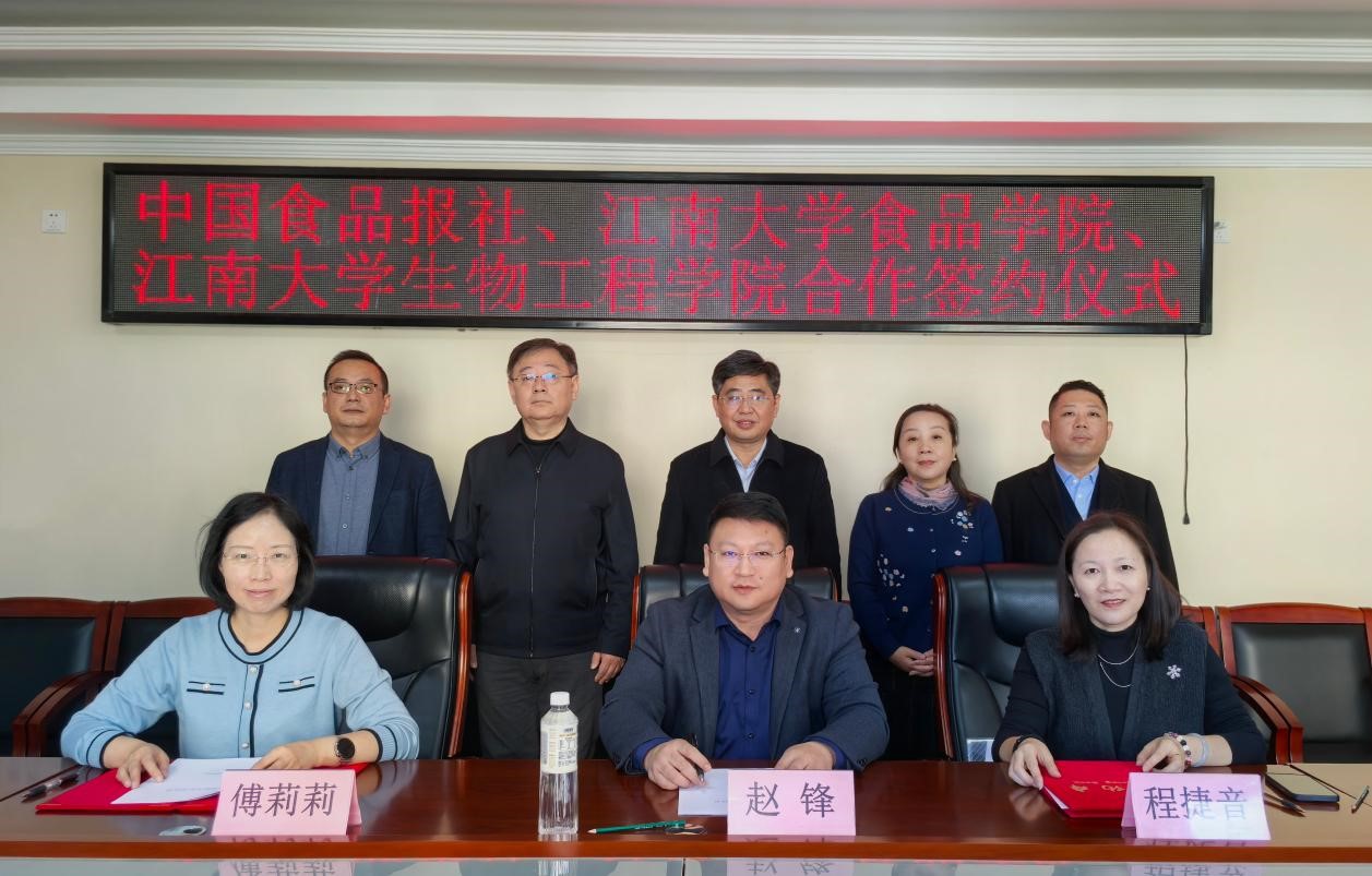 与中国食品报社在北京签署战略合作协议,标志着校媒之间搭建起相互协作、资源共享、优势互补的桥梁,共同开启合作共赢的新篇章。借助此次签约契机,与会三方将紧扣时代脉搏,探索全新的合作模式与机遇,运用专业媒体的力量全方位展现食业科技风采。中国食品报社党总支书记、社长黄国胜,总编辑、副社长刘彤,中国AV