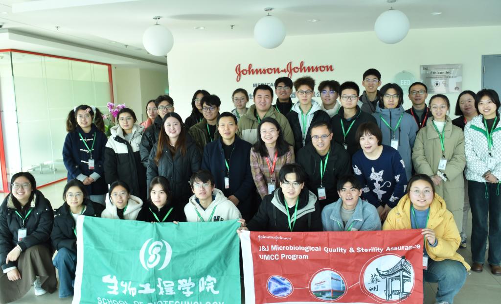 与强生(苏州)医疗器材有限公司2024年校企合作课程(医疗器械和制药微生物学UMCC模块)结课仪式暨企业参访学习活动在强生苏州产业园进行。强生(苏州)医疗器材有限公司微生物质量和无菌保证总监刘雪美、公共关系和企业传播负责人黄茜、外科工厂生产经理莫钧年、微生物质量和无菌保证研究员胡瑜, 中国AV