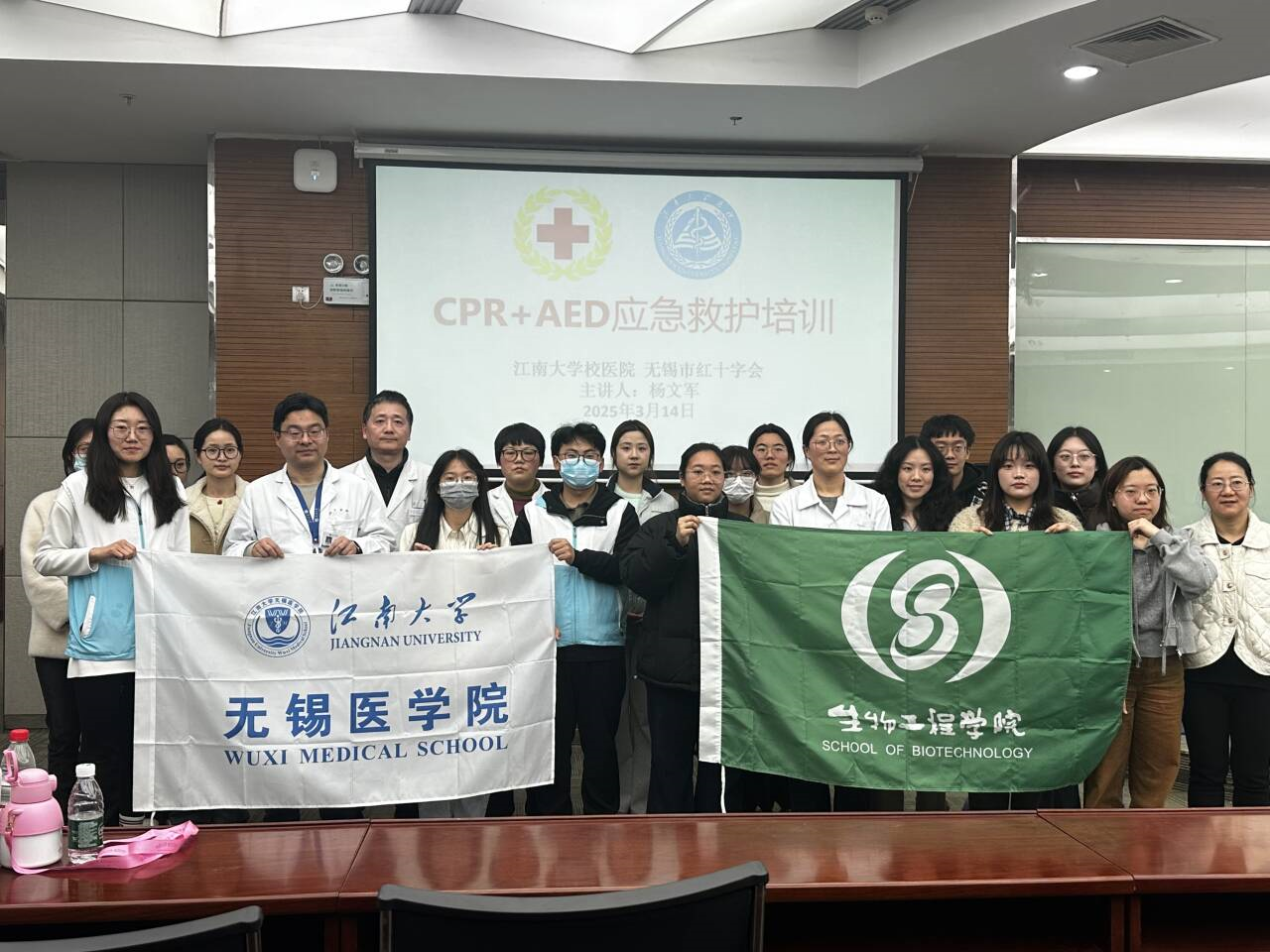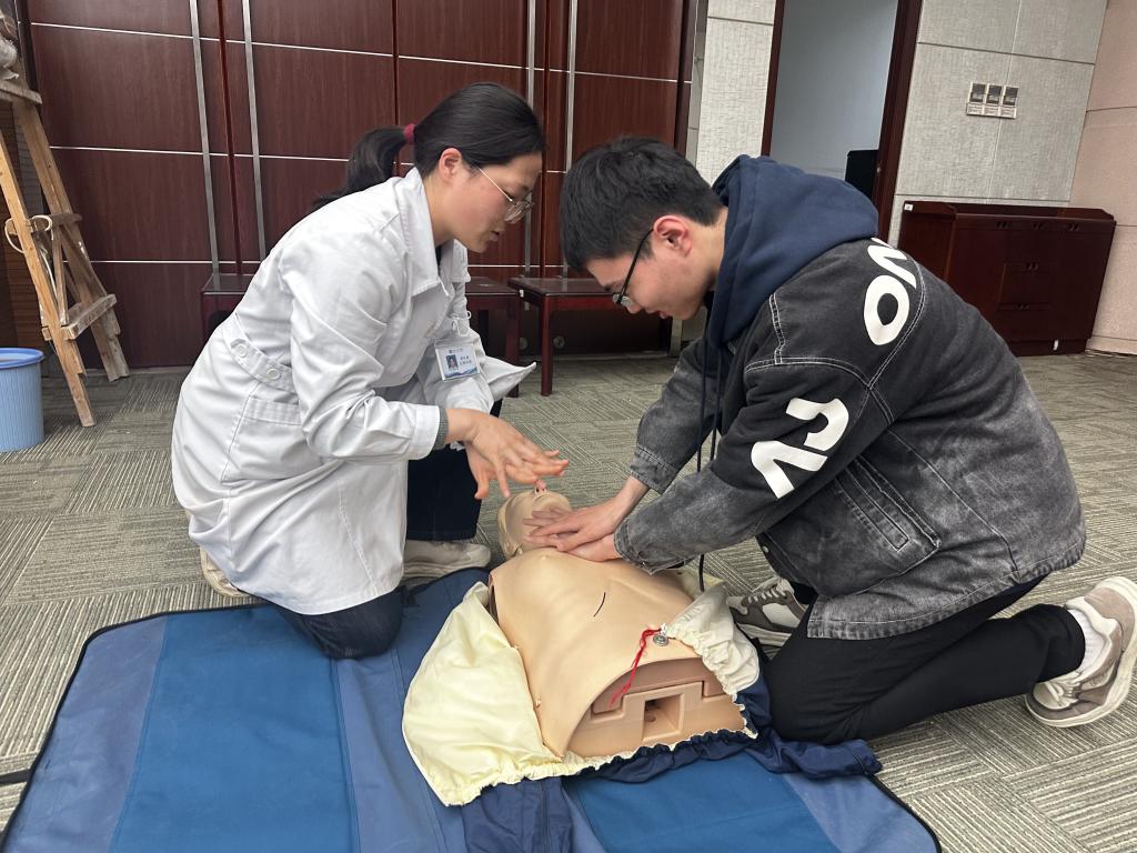 校医院、无锡市红十字会杨文军老师主讲,现场通过科普讲座、模拟演练等形式开展急救知识普及。